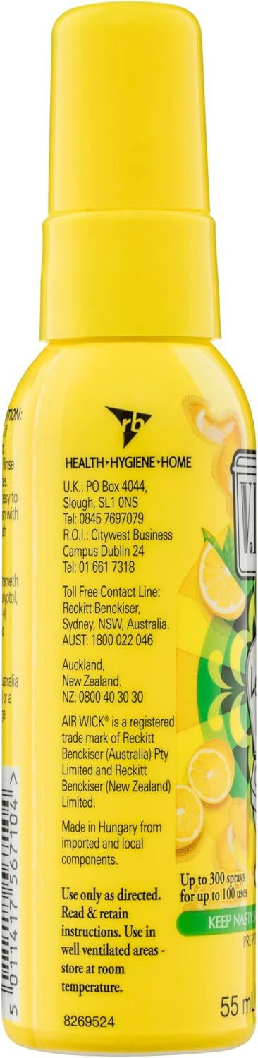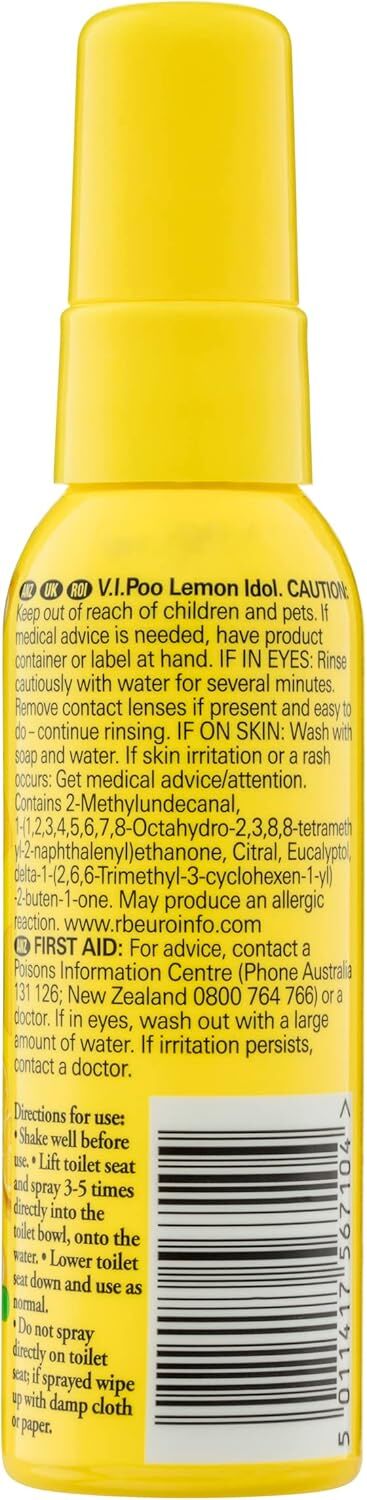 Air Wick Lemon Idol Toilet Spray is here to help change the way we face embarrassing bathroom odours. Keep nasty smells in the toilet bowl with air wicks fresh fragrances. Trap nasty smells in the bowl and release a spectacular fragrance that leaves the bathroom smelling better and fresher than it did before you used it. Vipoo toilet odour neutralizer is as easy-to-use as a bathroom spray, but far more effective in preventing toilet bowl odours. When you spray vipoo before you go, smells are stopped in their tracks while leaving a light scent behind. Includes 55 ml.