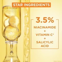 • Enriched with a potent mix of citrus extracts, 3.5% Vitamin C derivates, Niacinamide and Salicylic Acid