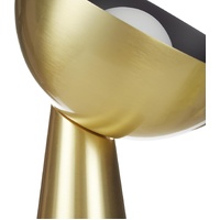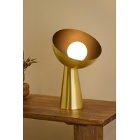 Redefining style, Grand Designs is at the forefront of contemporary living. It's an enduring tribute to the desire for longevity and sustainability in a home aesthetic. This Hugh Table Lamp will brighten your day in more ways than one. It features a tapered base and round shade, both gold-finished steel, holding a round glass lamp. This in-house design is a stylish and practical statement piece in any home. Place it on a bedside table, desk or console to create a comfortable reading or working nook. Enrich your interiors with this beautiful Hugh Table Lamp from Grand Designs.