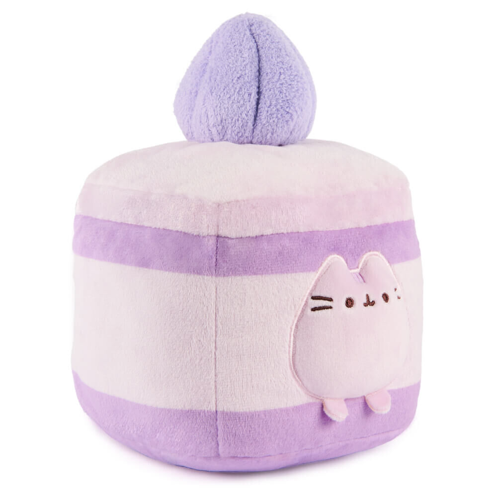 • Features layers of purple striped plush with a soft lilac Pusheen cake decoration in front