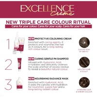 Excellence Crème is the leading protection hair colour with triple care: an advanced technology concentrating 3 powerful ingredients to strengthen your hair leaving it softer and protected. Over time, your hair loses vitality and your colour loses radiance. Excellence Creme by L'Oreal Paris, our first non-drip conditioning formula enriched with Pro-Keratin, helps replenish hair and rejuvenate colour.