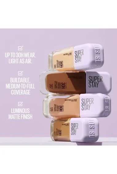 • Introducing Superstay Lumi Matte 30H Liquid Foundation by Maybelline New York. Designed to stay flawless for up to 30 hours, this luminous matte liquid foundation offers medium to full buildable coverage.