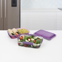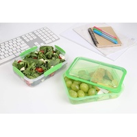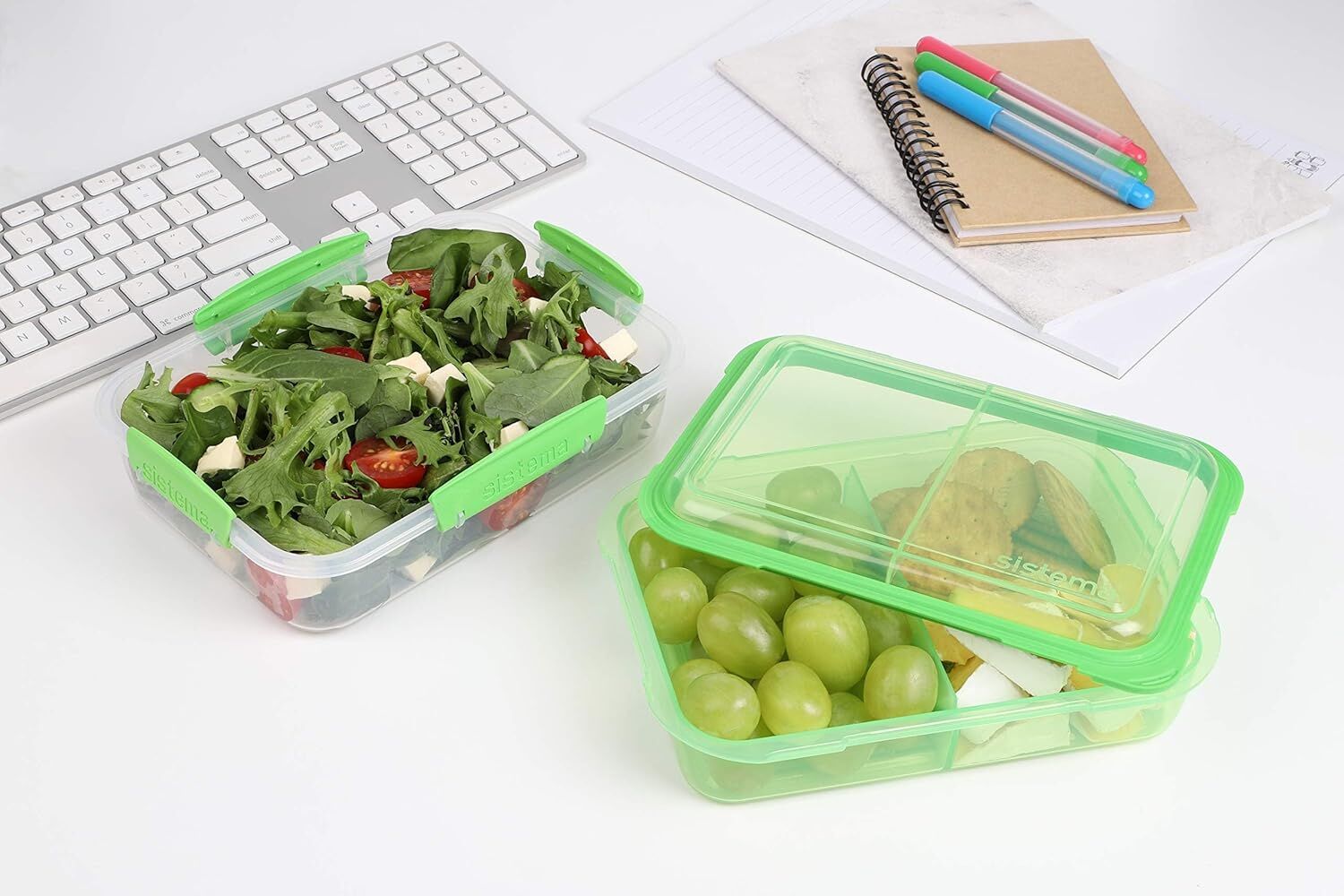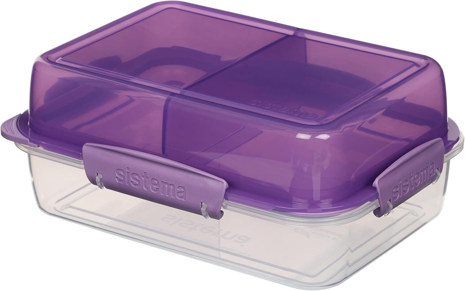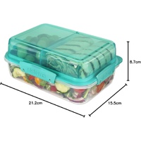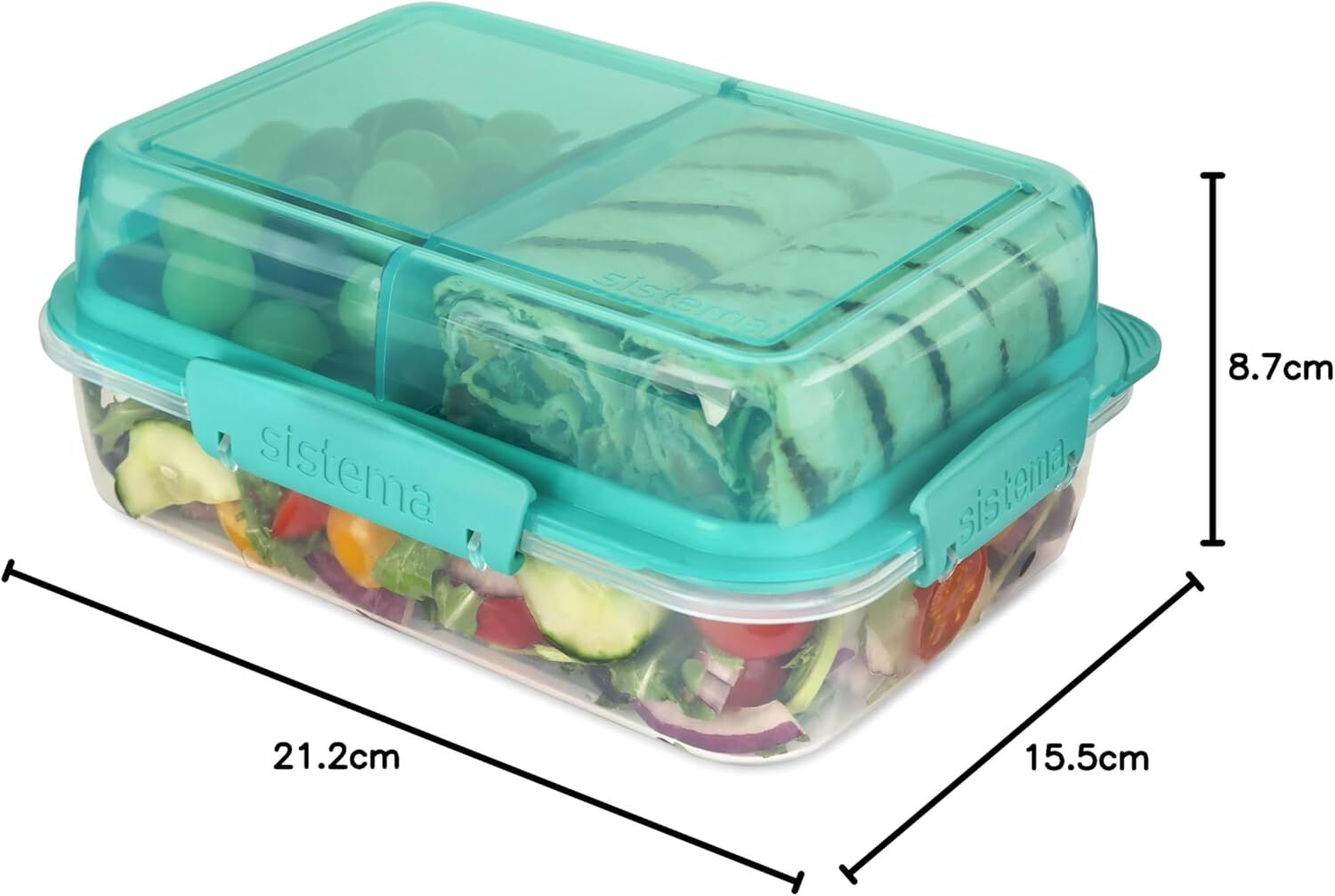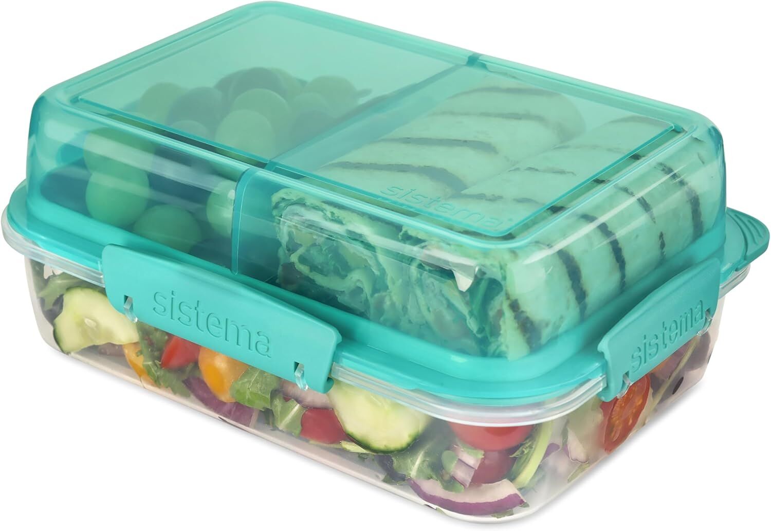 • Featuring a larger base compartment for salads, sandwiches and stir-fries and a split top container for fruits and snacks